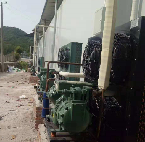 1、配备了6套比泽尔 15HP 380v 制冷机组和DD-160系列冷风机。