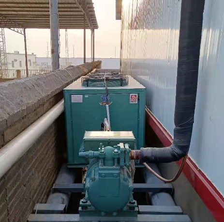 1、配备了4套比泽尔系列制冷机组和DD-40、DD-80系列冷风机。