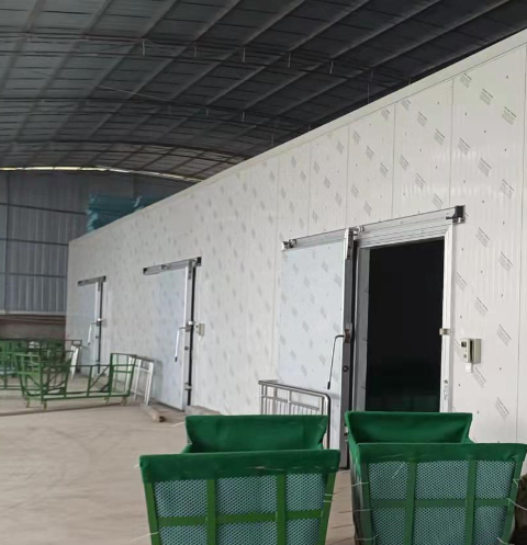 2、冷藏库采用B1级100mm聚氨酯(五面体),冷冻库采用B1级150mm聚氨酯,钢板厚度0.326mm,地面浇灌水泥。