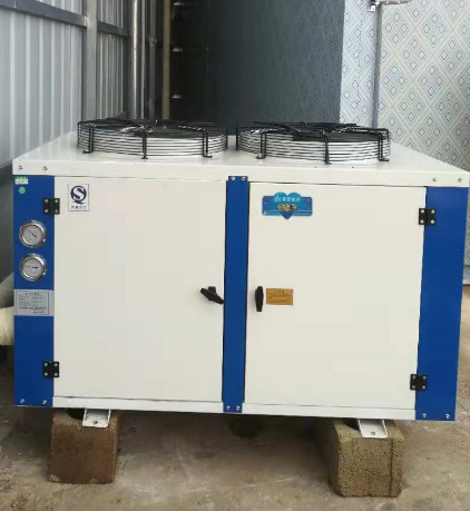 1、配备了比泽尔半封闭活塞式制冷机组和进口吊顶式冷风机,配备冷却水塔。